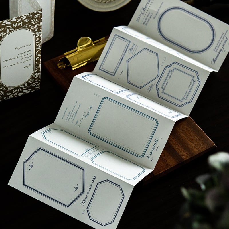 アコーディオン状にミシン目で繋がったメモです。1枚1枚ちぎっても、繋がったそのままの形でも使えます。コラージュに使うほか、ちょっとしたギフトに添える一言メモとしても。押しコラージュ、ジャンクジャーナル、手帳デコ、その他様々なクラフト作品やラッピングなどに。