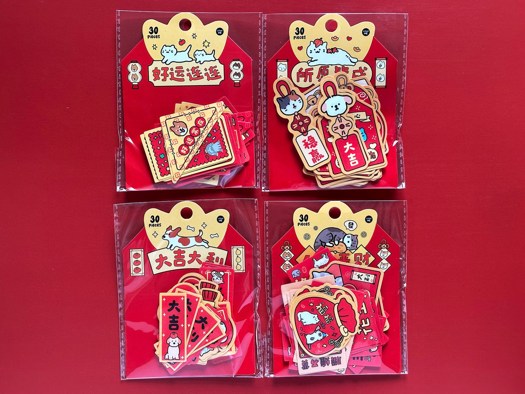 わんにゃんラメ入り開運フレークシール 15種30枚入り 喜至福来シリーズ[IM-18s]