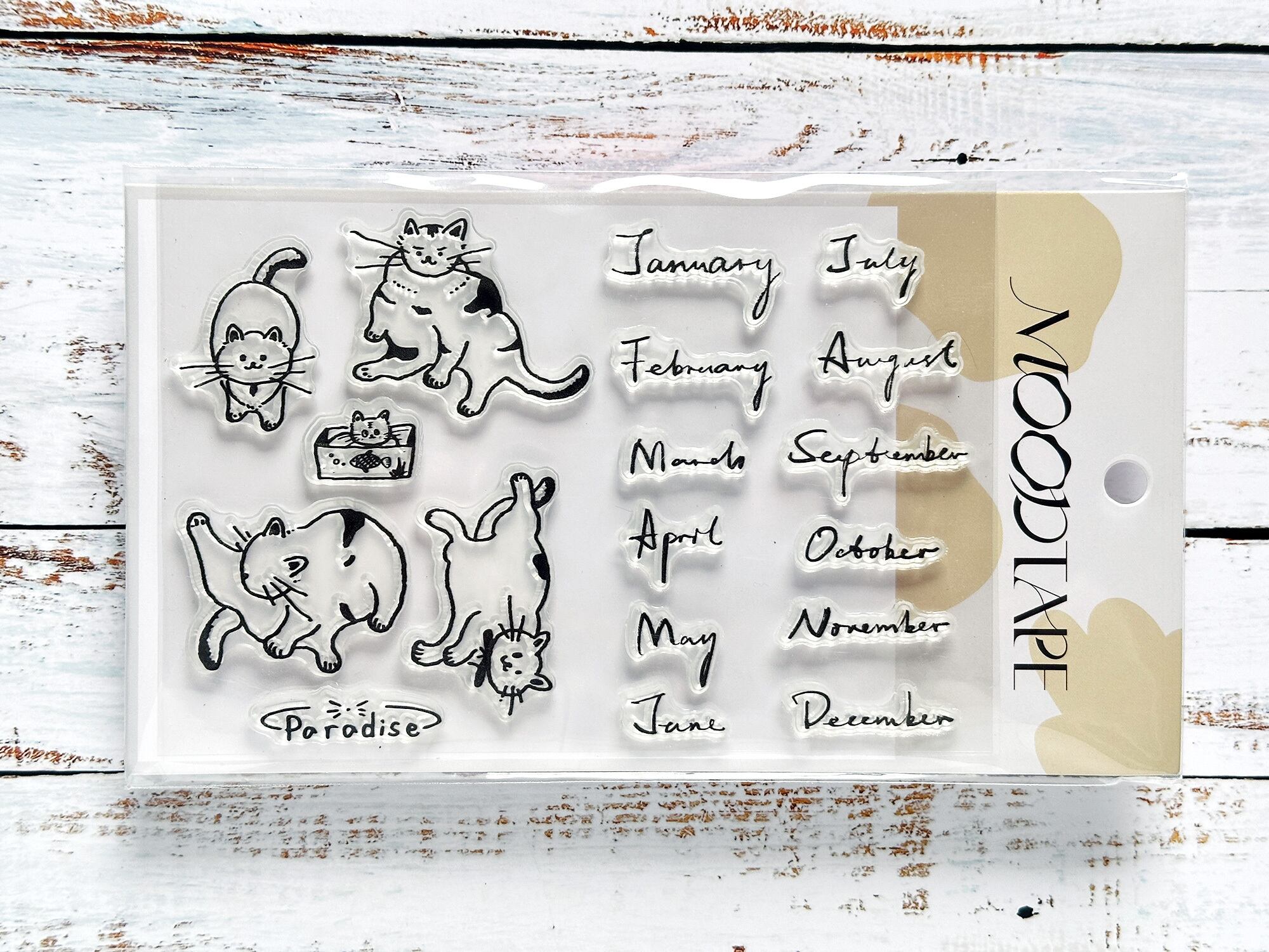 手書き風のゆるいテイストの猫ちゃんがとっても可愛いです。毎月のスタンプは手帳に使うとおしゃれな雰囲気に。コラージュやジャンクジャーナル、スクラップブッキング、カードメイキングなどに大活躍します。