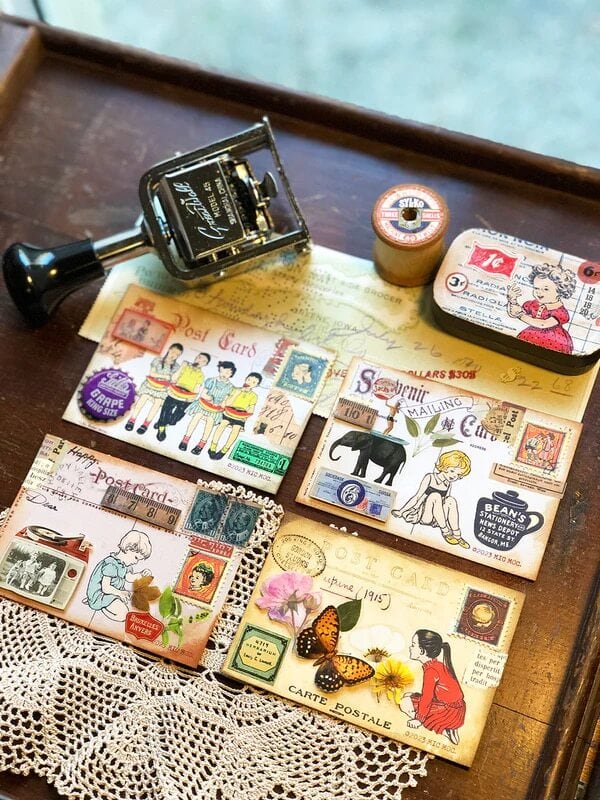 オーストラリアでヴィンテージの魅力たっぷりのスタンプや紙ものをデザインしているブランド「Mic Moc」のミニポストカード/ジャーナルカードセットです。