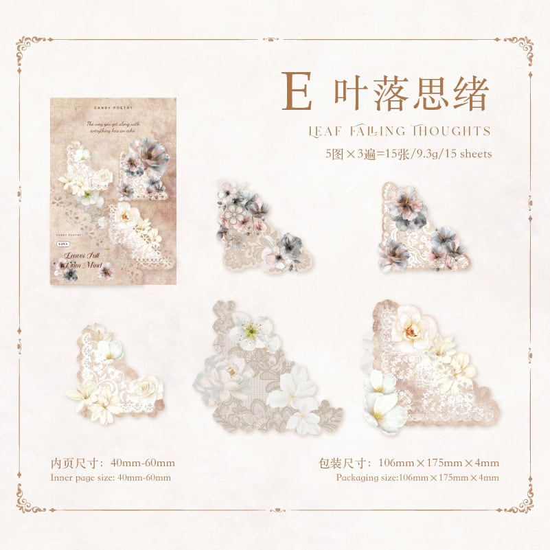 花とレースのコーナー和紙シールセット 5種15枚入り 繁花一隅(Flower Blossoming Corner)シリーズ[CP-13s]