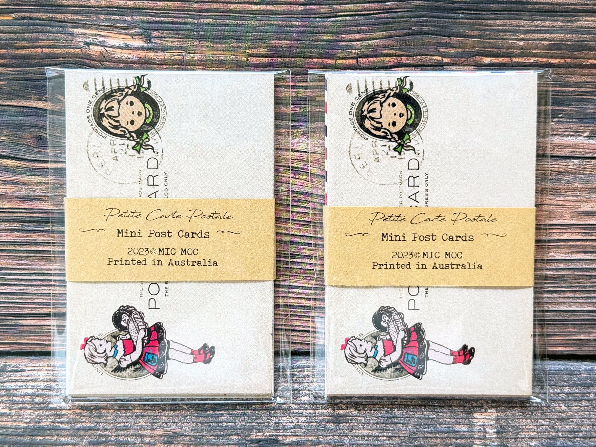 オーストラリアでヴィンテージの魅力たっぷりのスタンプや紙ものをデザインしているブランド「Mic Moc」のミニポストカード/ジャーナルカードセットです。