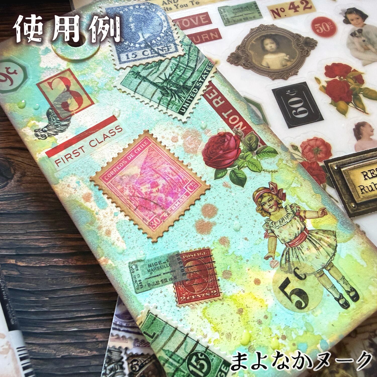普通のスタンプインクとして使ったり、ブレンディングフォームやブラシで紙素材にヴィンテージ風の風合いを出したり、コラージュの背景を作ったり、ステンシルに使ったりと、使い方は色々。