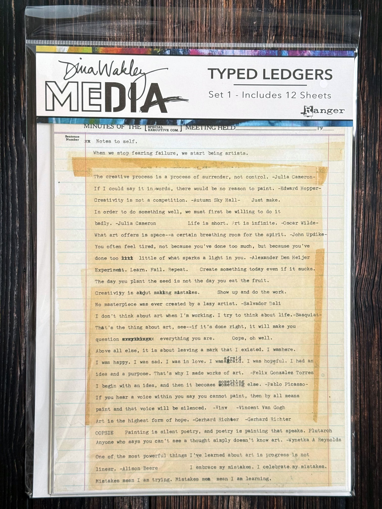 ヴィンテージ台帳風素材紙12枚入り Dina Wakley Media Typed Ledgers - Set 1 MDA79033【Ranger】[RA-13p]