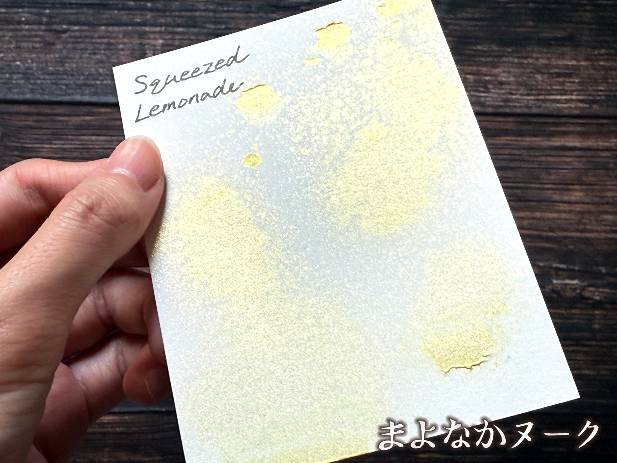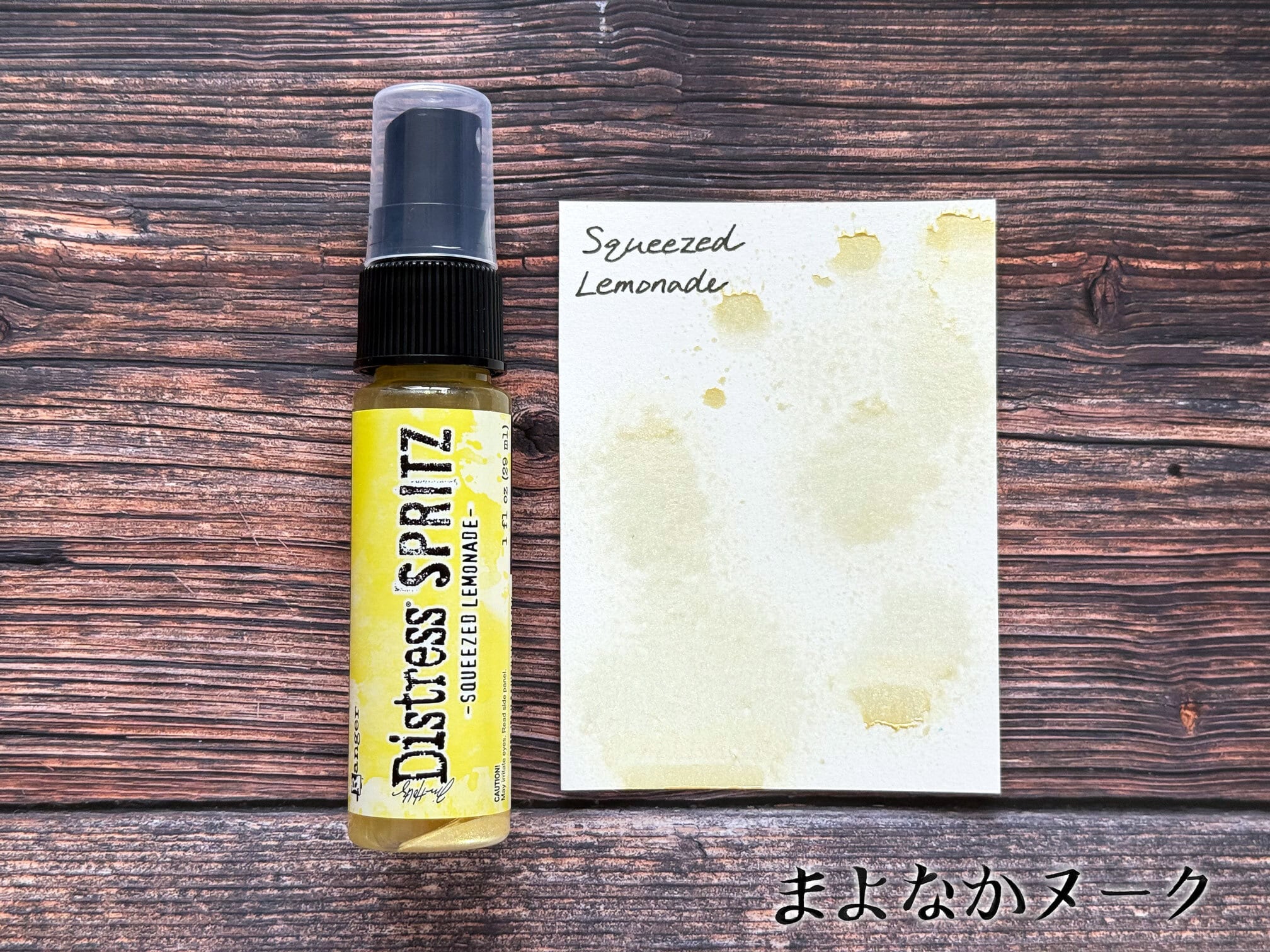 ディストレススプリッツは、透明な液体にパール顔料がブレンドされたスプレーです。紙や木などの多孔質面に使用することができます。こちらの色は「Squeezed Lemonade」です。
