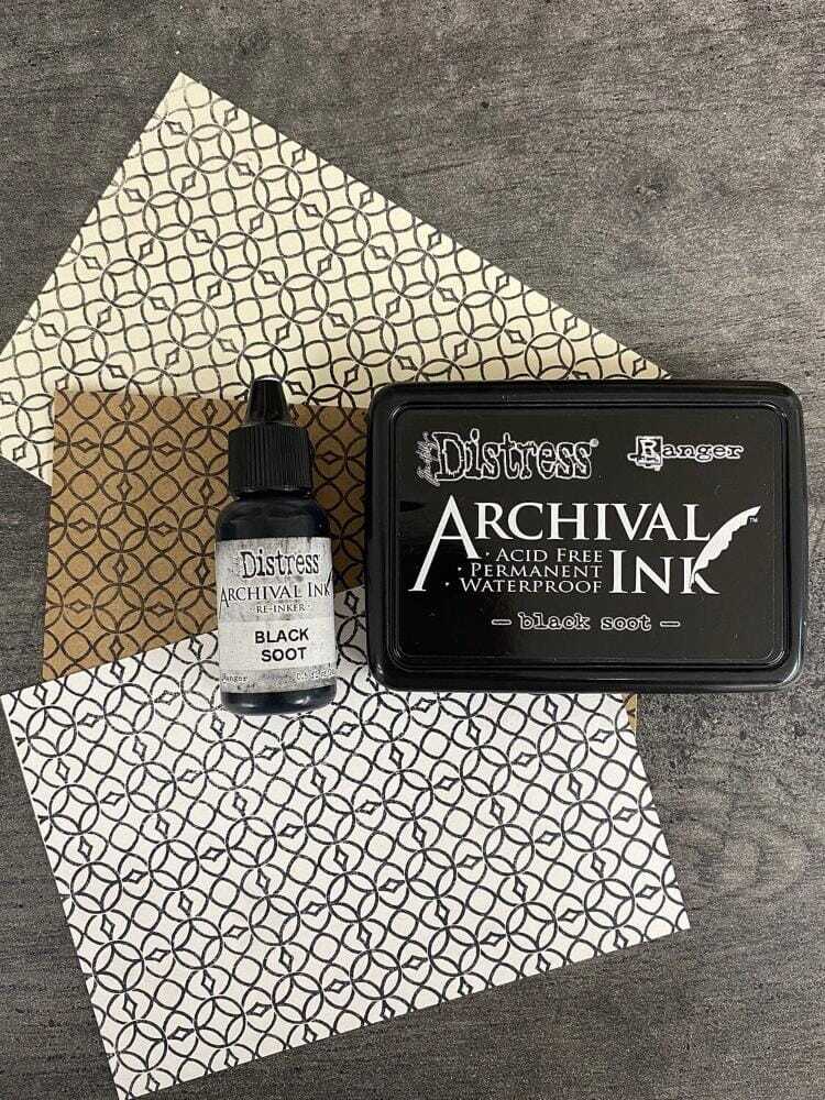 アーカイバルインクは、乾くと防水性になる色褪せしにくい染料インクです。スタンプをくっきりと長持ちする仕上がりにしたい時や、スタンプしたデザインを滲ませずに水性インク・マーカー・アクリル/水彩絵の具・スプレーなどのツールを併用したい時に向いています。
