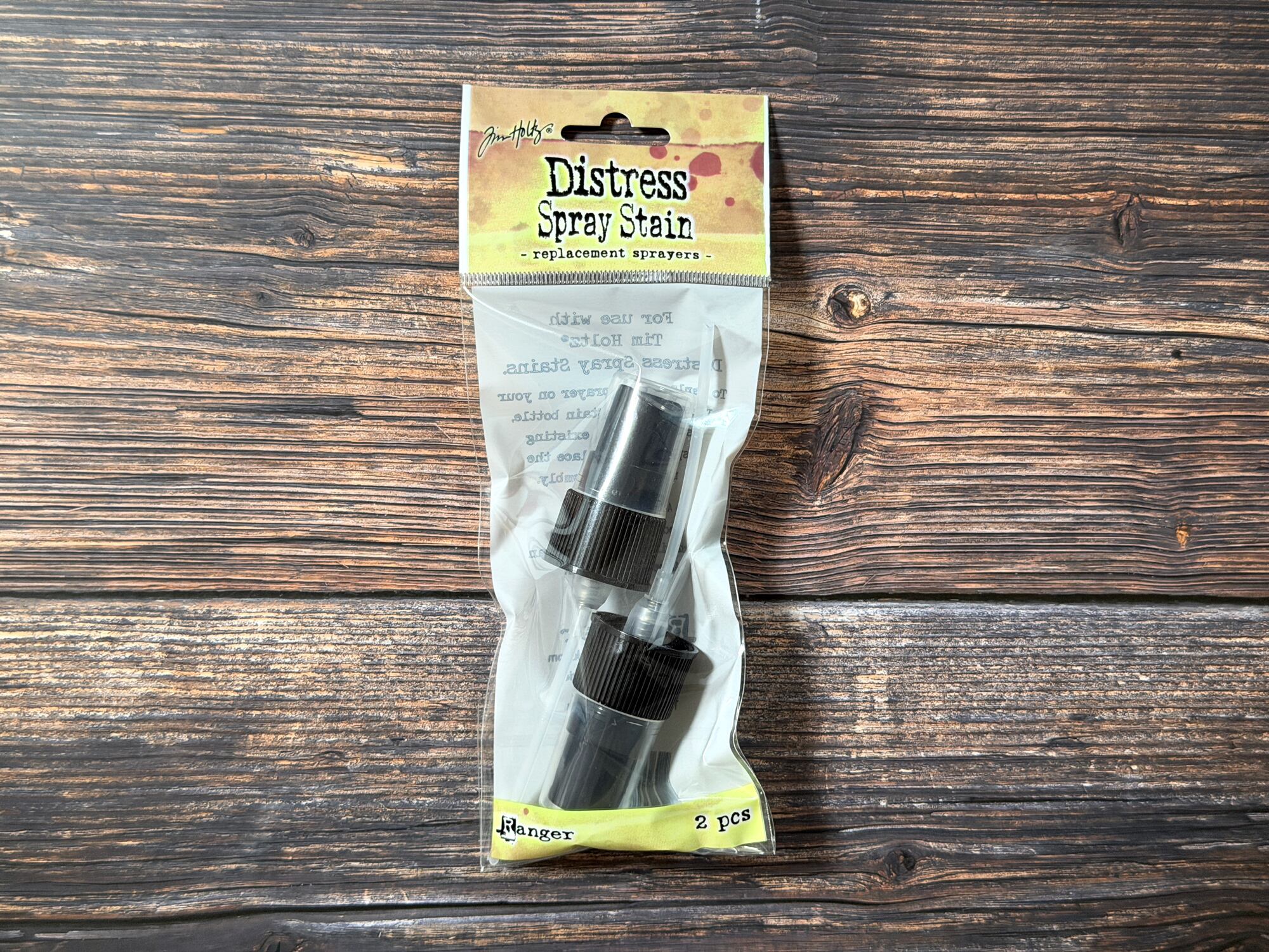 ディストレススプレーステインは、ディストレスインクと同じ染料のスプレーです。こちらはインクが詰まったりしてうまくスプレーできなくなったり、スプレー部分が故障した際に交換できる専用のスプレーになります。