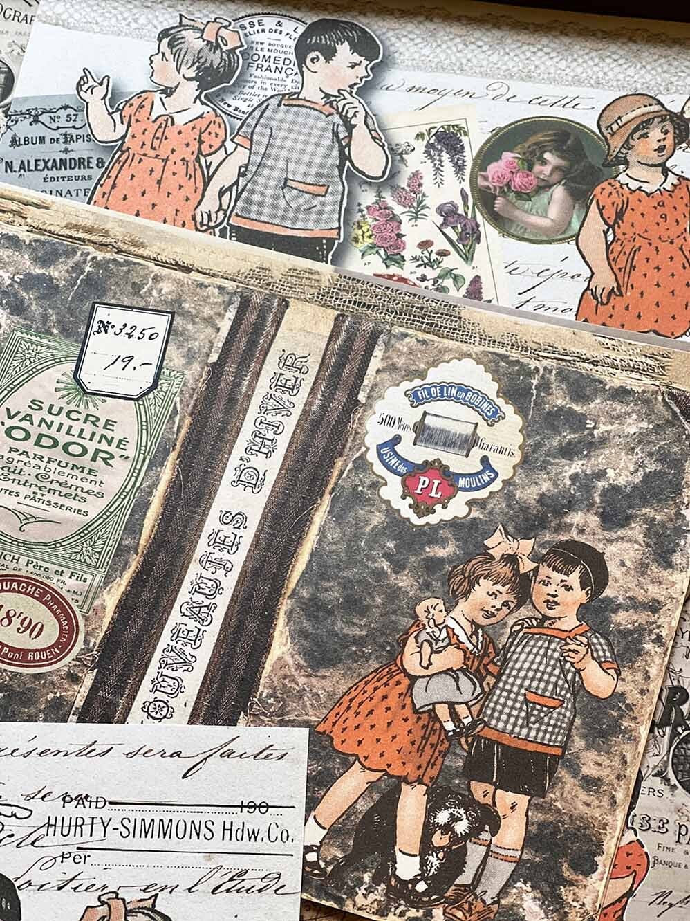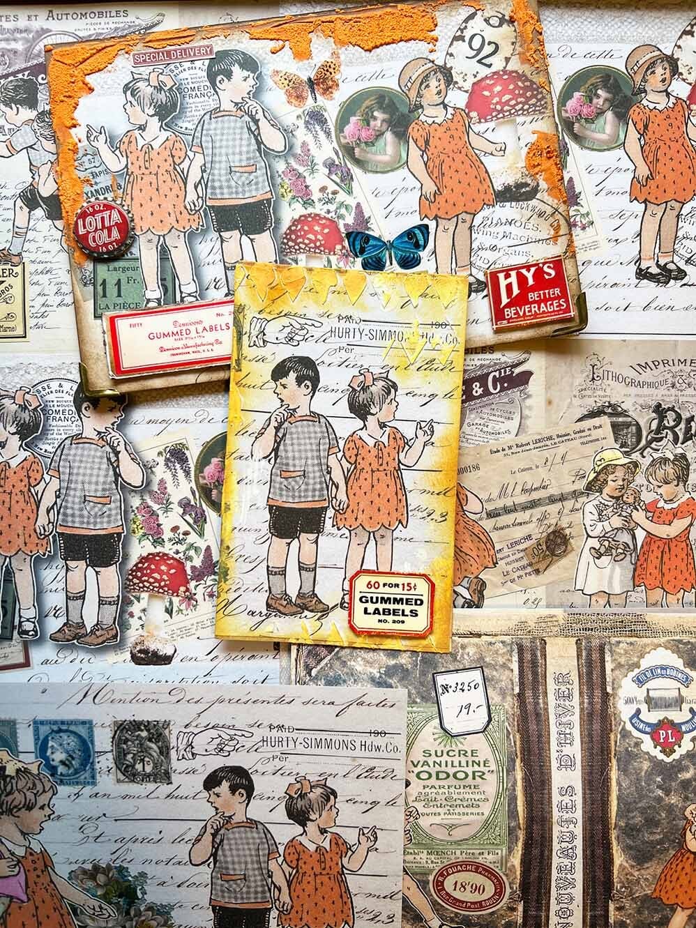 A5サイズほどのペーパーが4種類、各3枚ずつ入っています。ヴィンテージの子供たちのイラストを主役にしたかわいらしいデザインです。