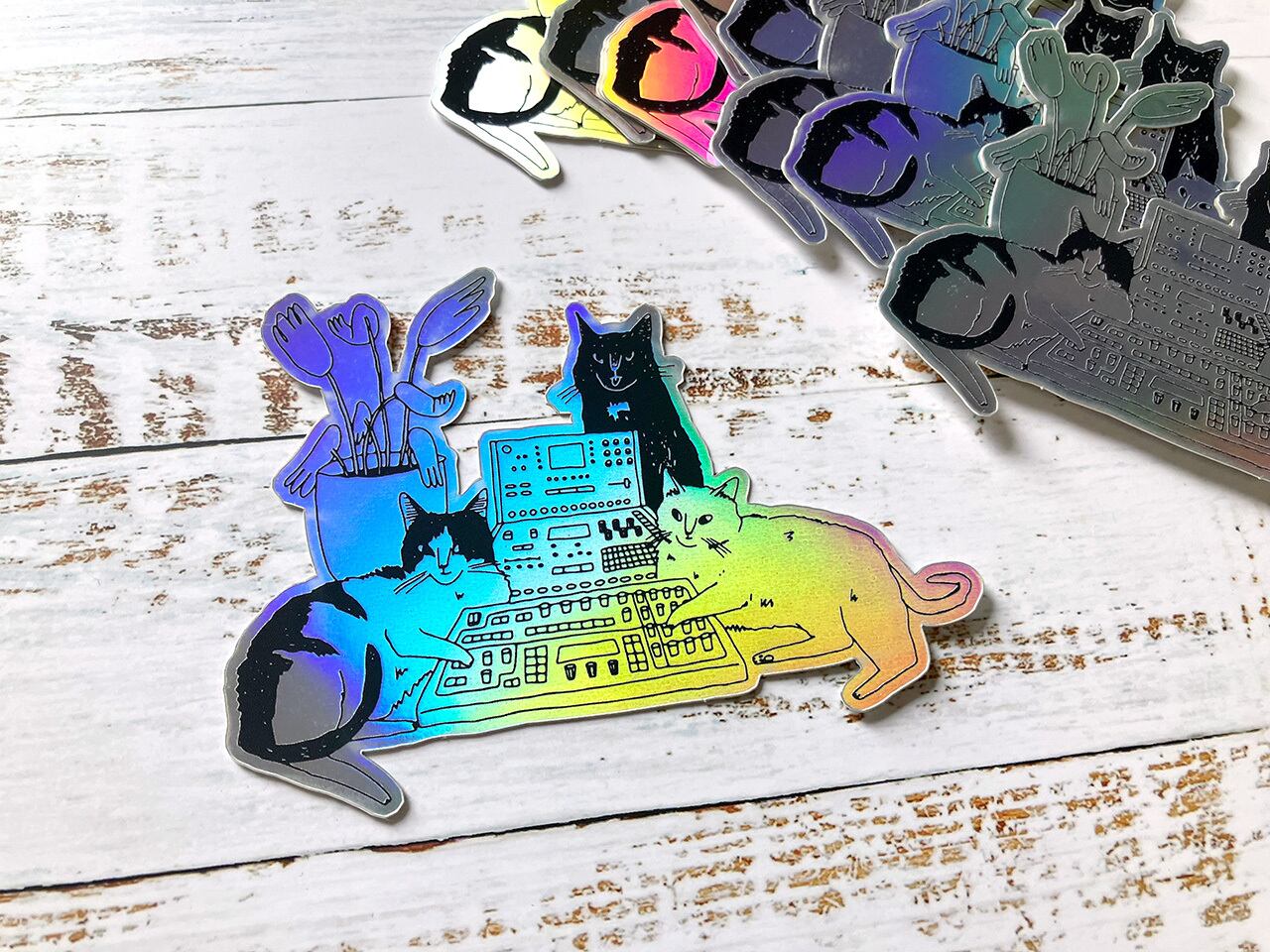 猫とシンセサイザーのホログラムステッカー Cats On Synthesizer【ThePrintedCat】[TPC-07]
