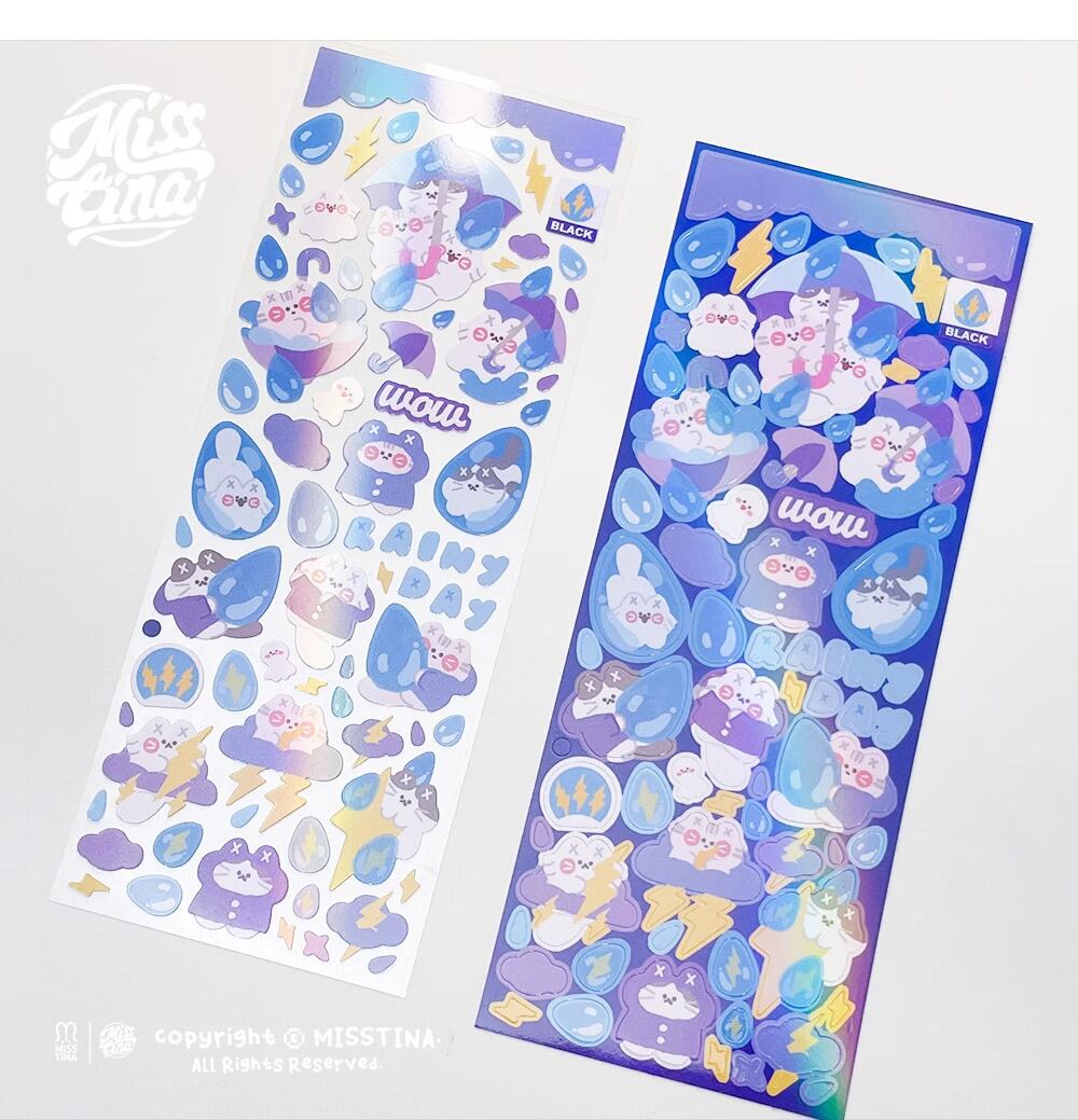 ポップな猫のオーロラシール2枚セット Rainy Day【MISSTINA】[MT-02]