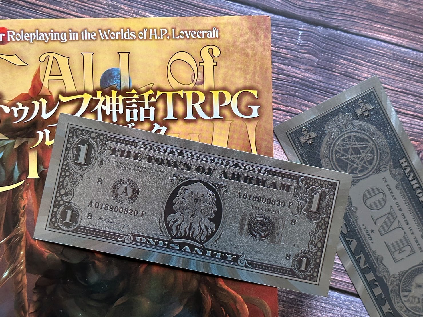 クトゥルフ神話TRPGで使われる、正気度を示す「SAN値(Sanity)」という言葉。それをまるで紙幣のようなデザインに落とし込んだ、ユニークなブックマークです。金属のように見えますが、特殊加工された紙でできています。