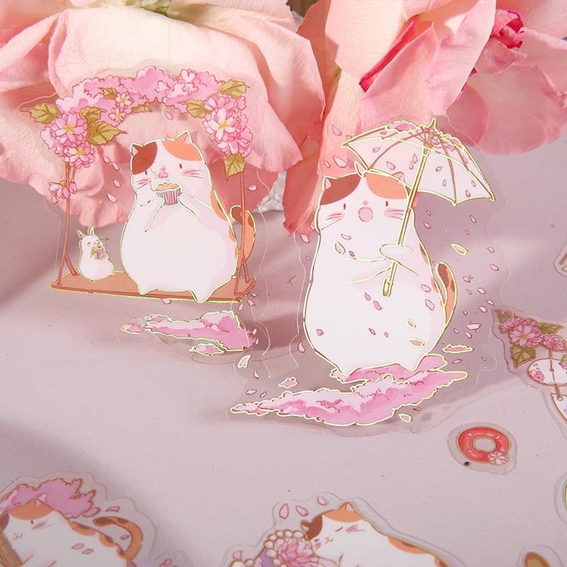 猫と桜の季節箔押しPETシール40枚入り【沐染】[MX-01]