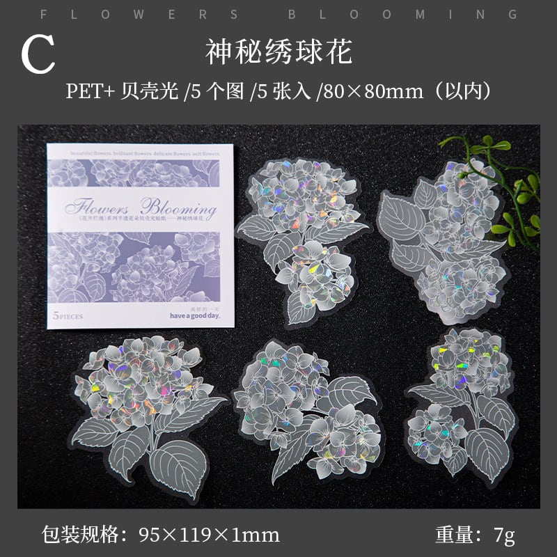 透明な花々のシェルライトPETシールセット 5種5枚入り 花开烂漫シリーズ【美好的一天(have a good day)】[HG-8s]