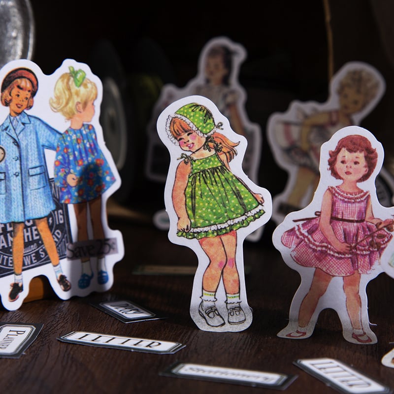 ヴィンテージ風少女のファッション箱入り和紙シールセット 50枚入り 童心乐园(Childhood paradise)シリーズ【美好的一天(have a good day)】[HG-17s]