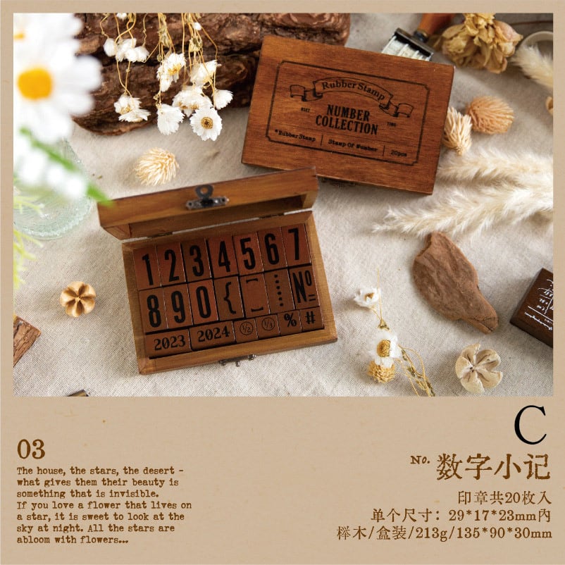木製ボックス入りレトロデザインスタンプセット 刻印时光(Engraved Time)シリーズ【言己】[YJ-07]