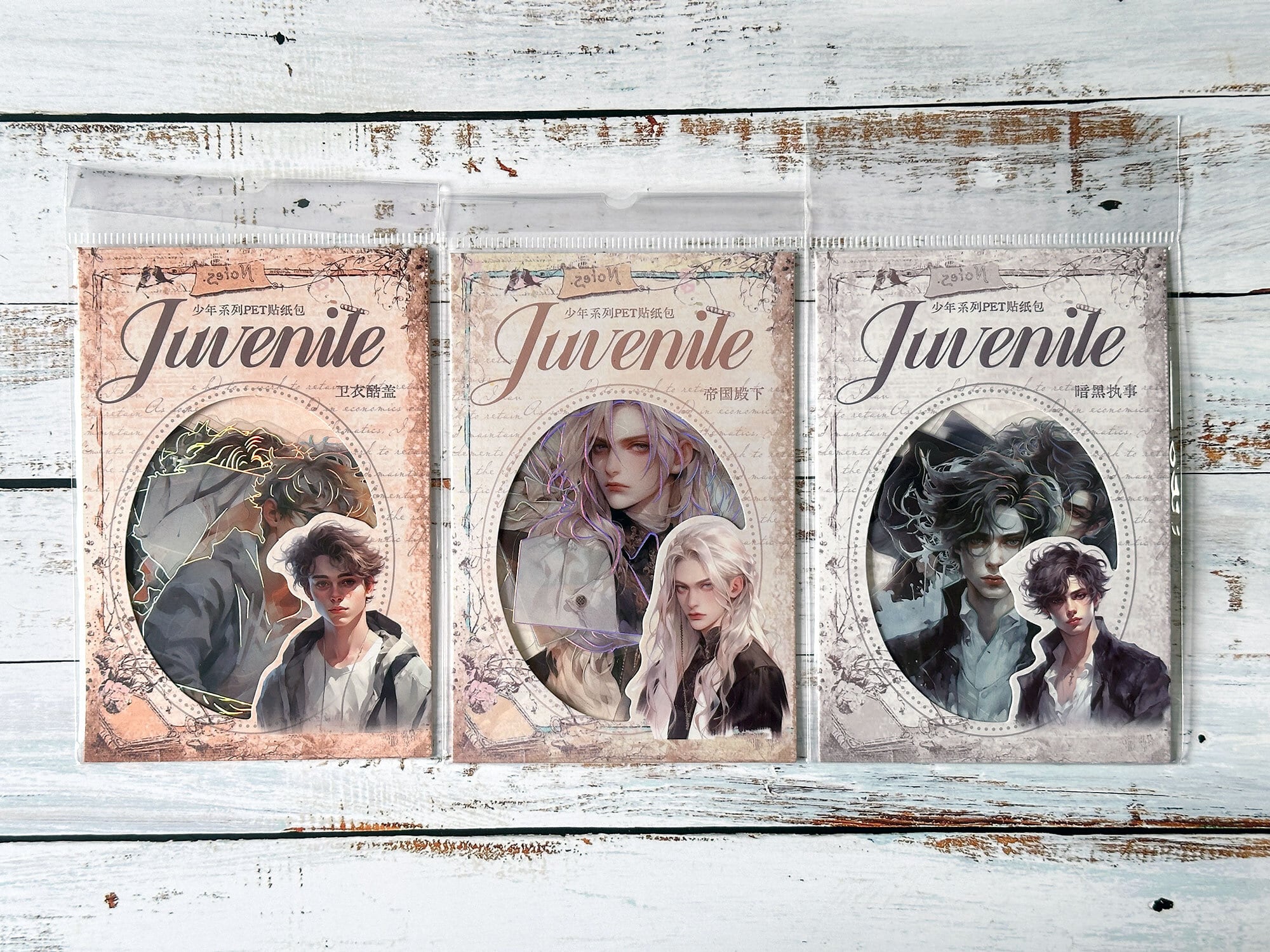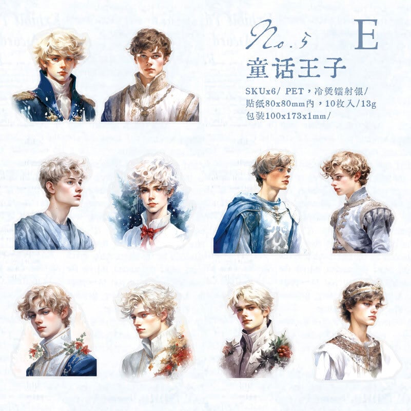 ナチュラルな雰囲気の男の子からクールな貴族風の男性まで、様々な雰囲気の男の子が描かれています。ぜひお気に入りのセットを見つけてください!きらきらのホログラムで存在感もばっちりです。コラージュ、ジャンクジャーナル、手帳デコ、その他様々なクラフト作品やラッピングなどに。