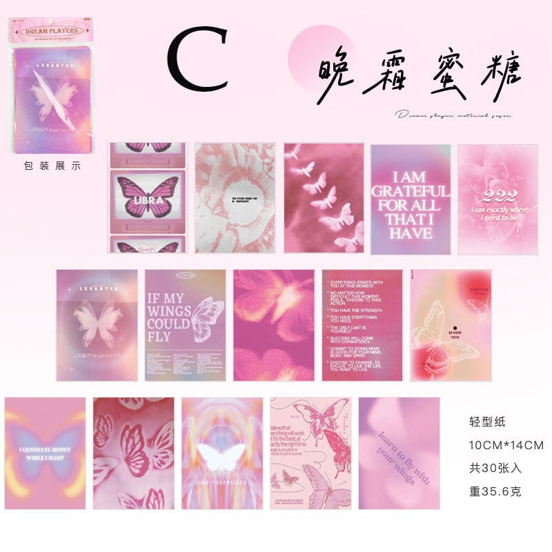 幻想的な蝶の素材紙セット 15種30枚入り 梦境玩家シリーズ【语闲】[YX-6]