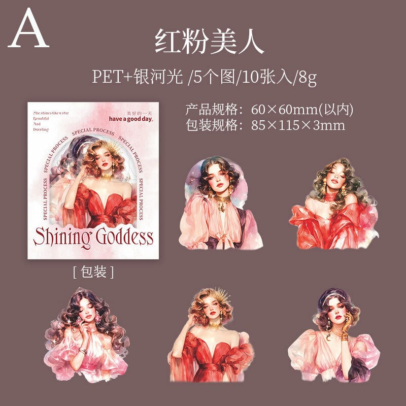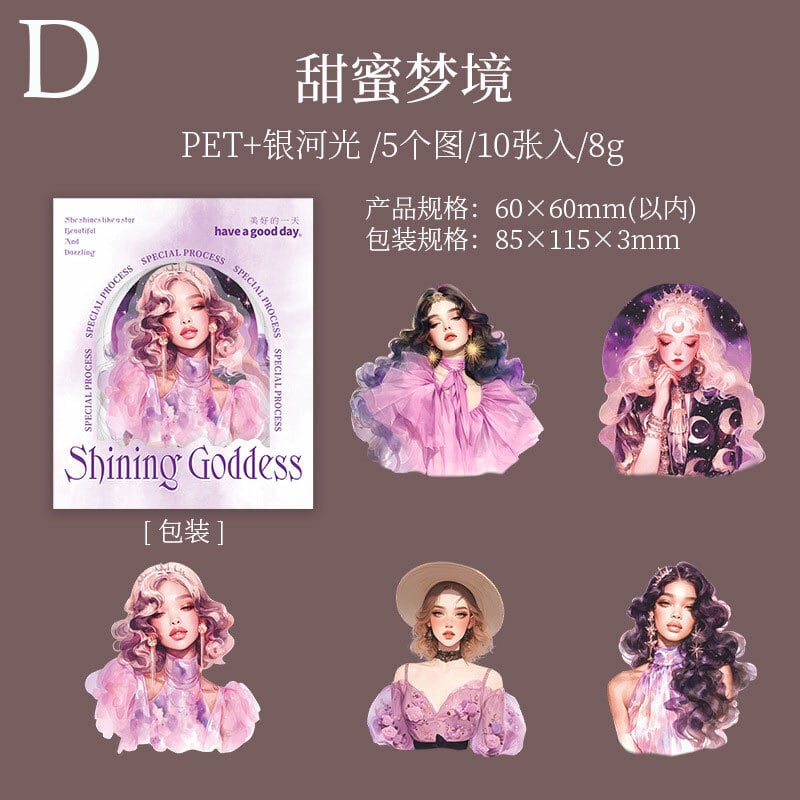 女神のホログラムPETシールセット 5種10枚入り 闪耀女神(Shining Goddess)シリーズ【美好的一天(have a good day)】[HG-30s]