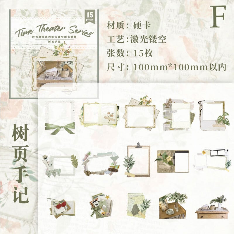 切り抜きモチーフのシールセット 15枚入り 时光剧场(Time Theater)シリーズ【纸迹】[ZJ-3s]