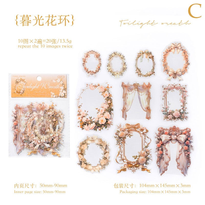 お花のフレーム風PETシールセット 10種20枚入り 花镜博物馆(Flower Mirror Museum)シリーズ【糖诗(CANDY POETRY)】[CP-10s]