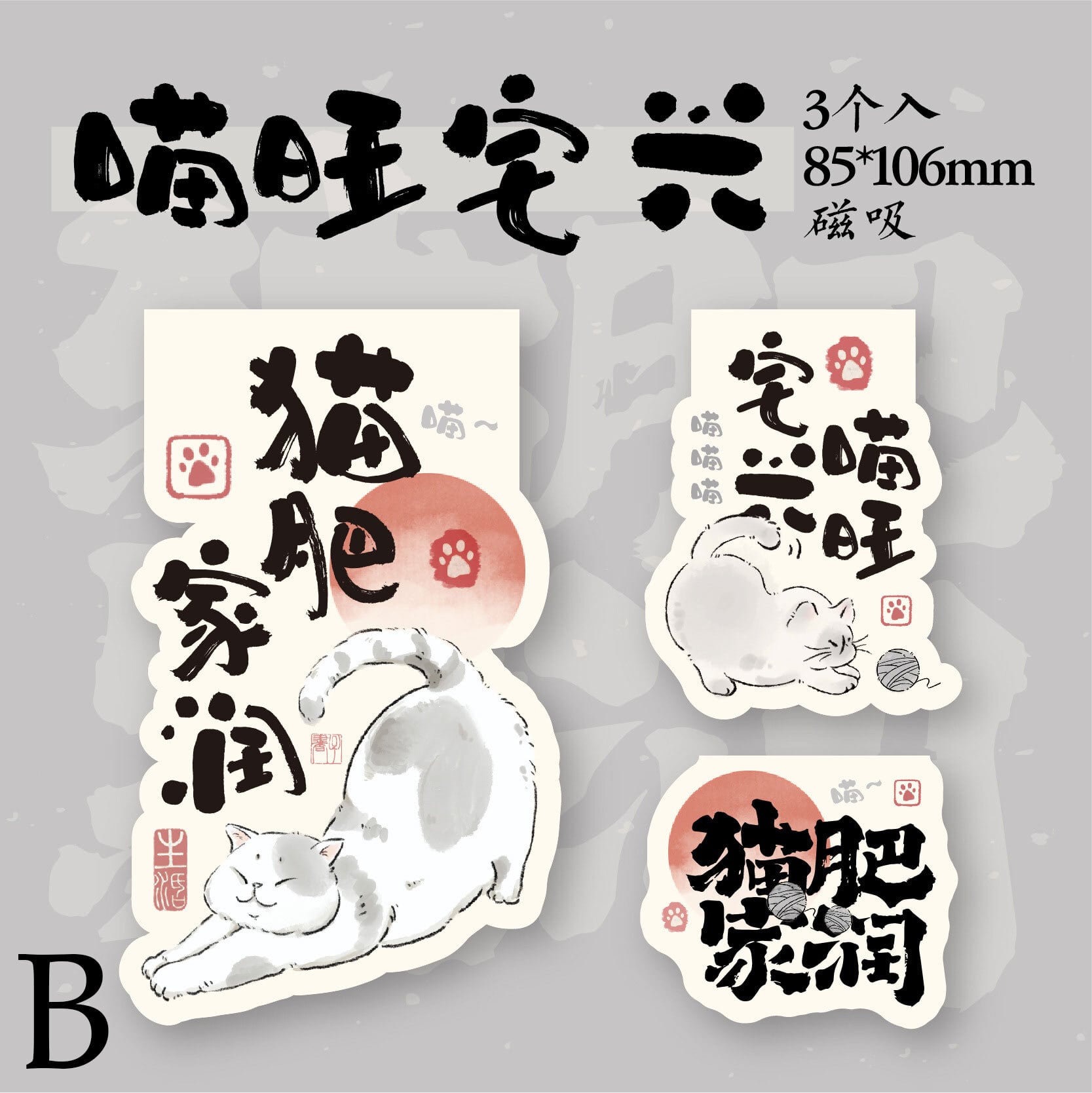 「猫肥家润」は、「猫が太っていると家が潤う(=福が来る)」という意味だそうです。「喵~(みゃお~)」というのは中国語で猫の鳴き声を表す言い方。