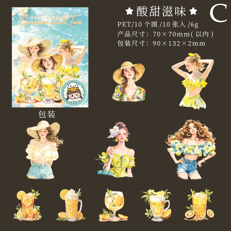 夏の少女とドリンクのホログラムPETシールセット 10枚入り 夏日冰茶(Summer Iced Tea)シリーズ【美好的一天(have a good day)】[HG-38s]
