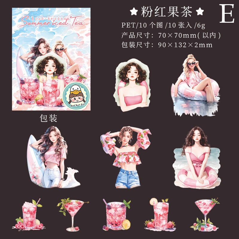 夏の女の子たちと美味しそうなドリンクのPETシールセット。