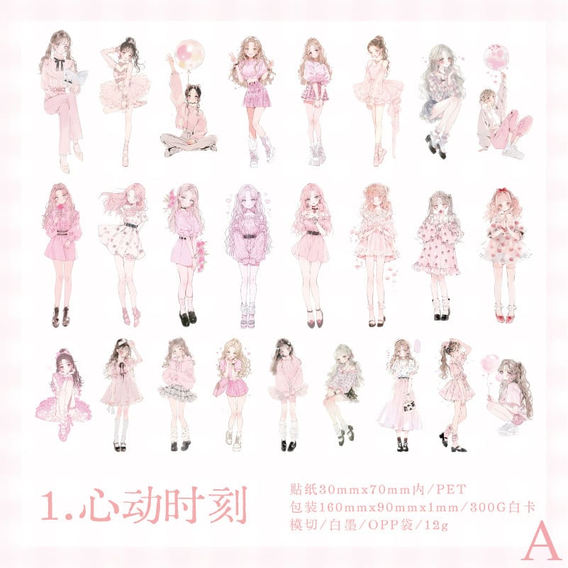 少女漫画風な女の子たちのPETシールセット 25種50枚入り 成长印记(Growth mark)シリーズ[MU-4s]