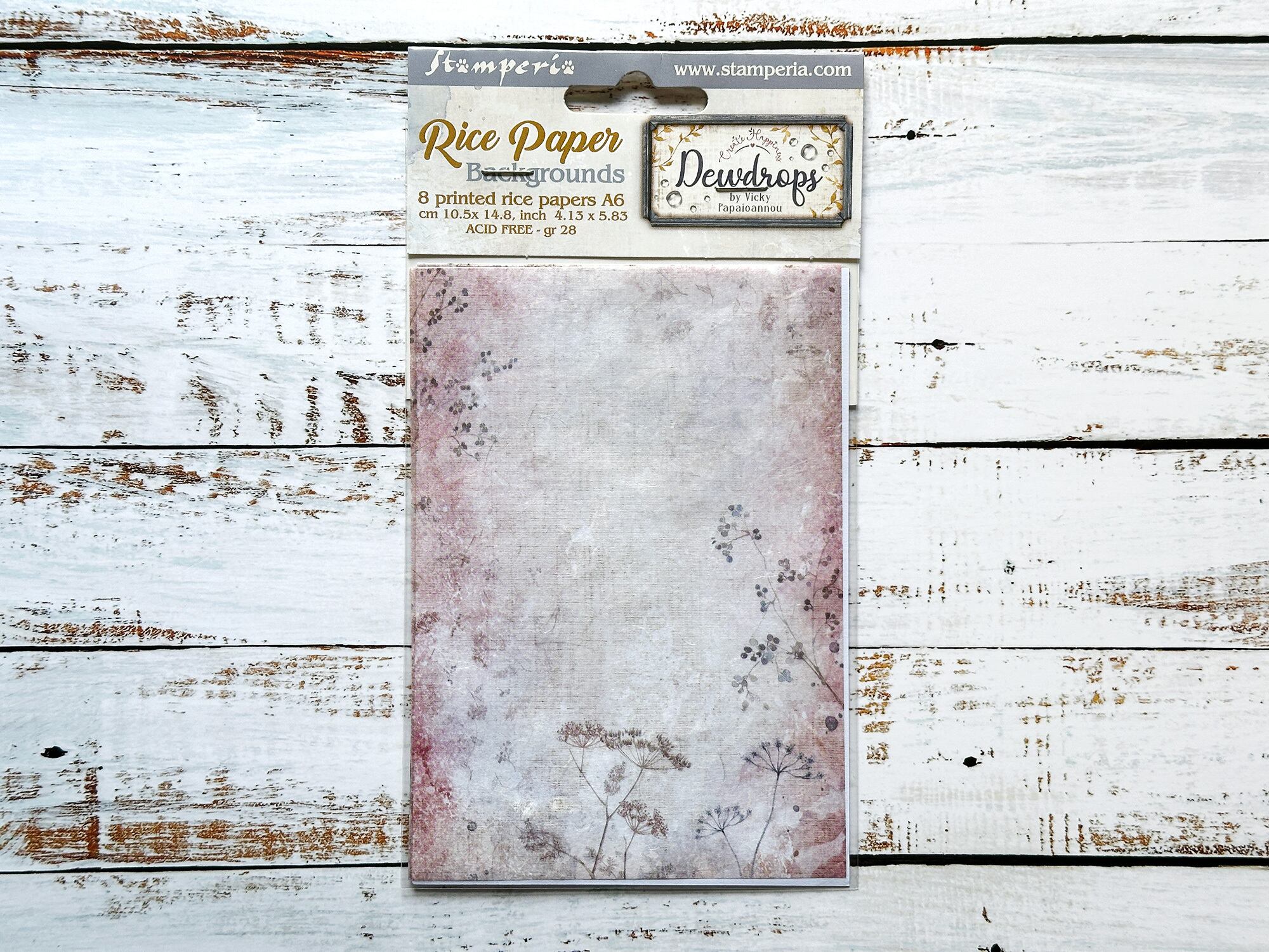 Stamperia Selection 8 Rice paper A6 backgrounds - Create Happiness Dewdrops ライスペーパー8枚セット DFSAK6034【Stamperia(スタンぺリア)】[ST-43p]