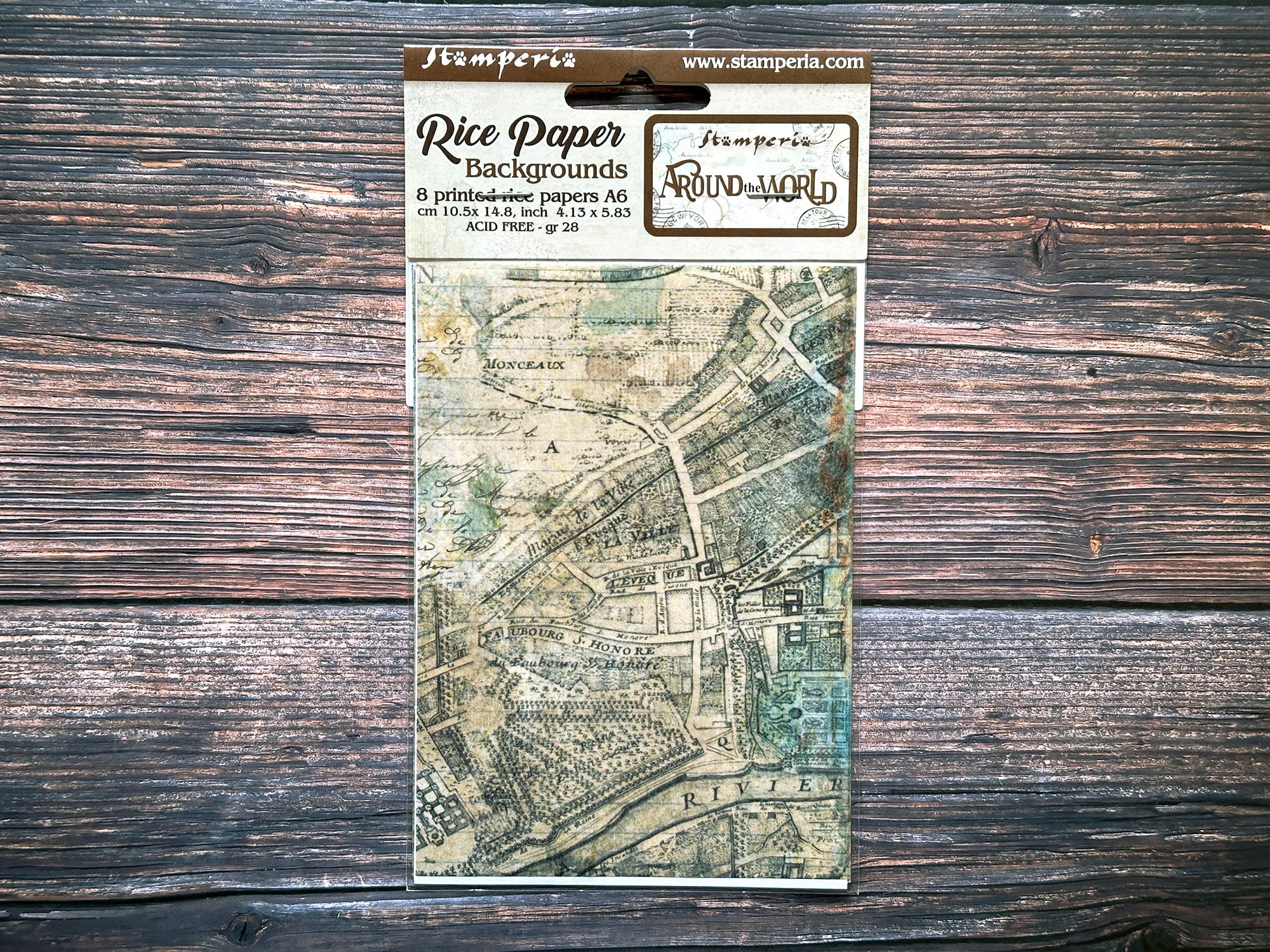 Stamperia Selection 8 Rice paper A6 backgrounds - Around the world ライスペーパー8枚セット DFSAK6005【Stamperia(スタンぺリア)】[ST-53p]